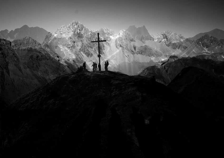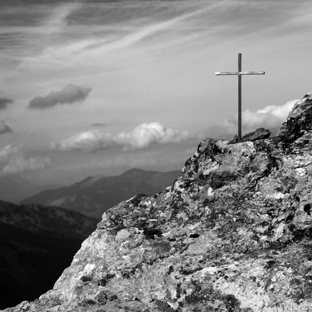 Wie selbstverständlich thronen Gipfelkreuze auf den Spitzen der Berge. Ganz selbstverständlich klettert man zum Gipfel um diese dann zu fotografieren.