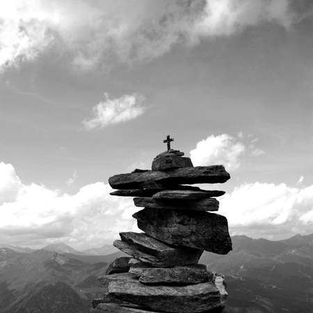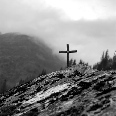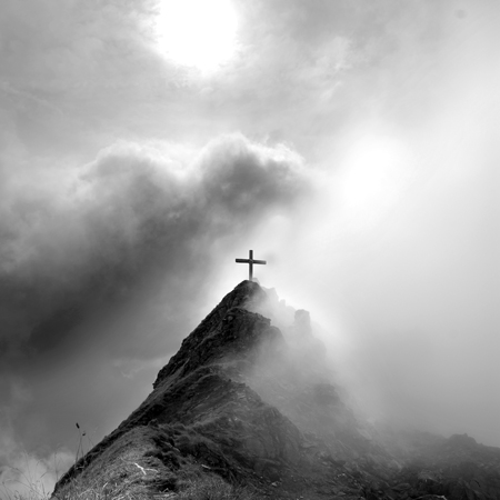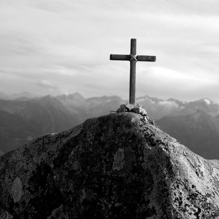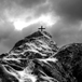 Ein Kreuz auf einem Berg symbolisiert einen Gipfel und der Gipfel wiederum steht für das erreichen eines Ziels.
